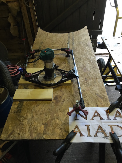 Considering that the shuttering ply is not smooth, making it difficult to move the pantograph, that the wood is low quality softwood and this is the first time I've done this, the result is not bad. I will,however, find a stencil that is four time full size and make a wooden nameplate twice full size from that. The wooden nameplate will then be used to create a full sized name plate as it will be easier to follow the wooden carving with the pantograph stylus rather then trying to follow a line on a page.