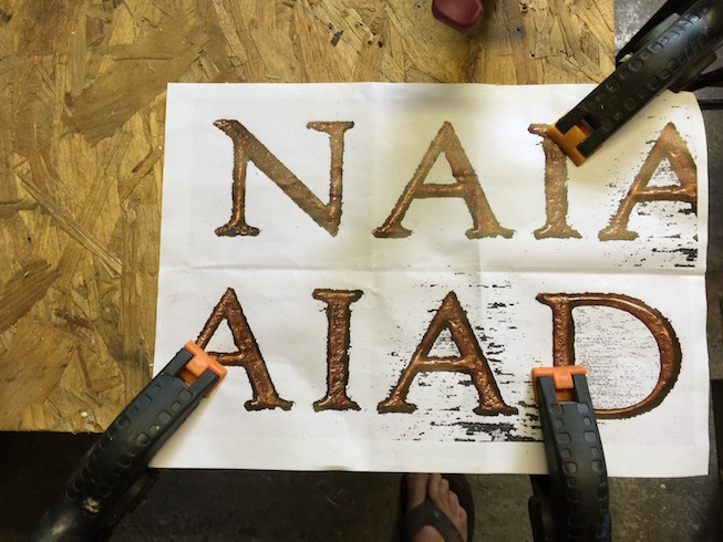 The photocopied nameplate letters were clamped in place and off I went. Just the 'N' for now as I don't want to spend a lot of time on this just yet.