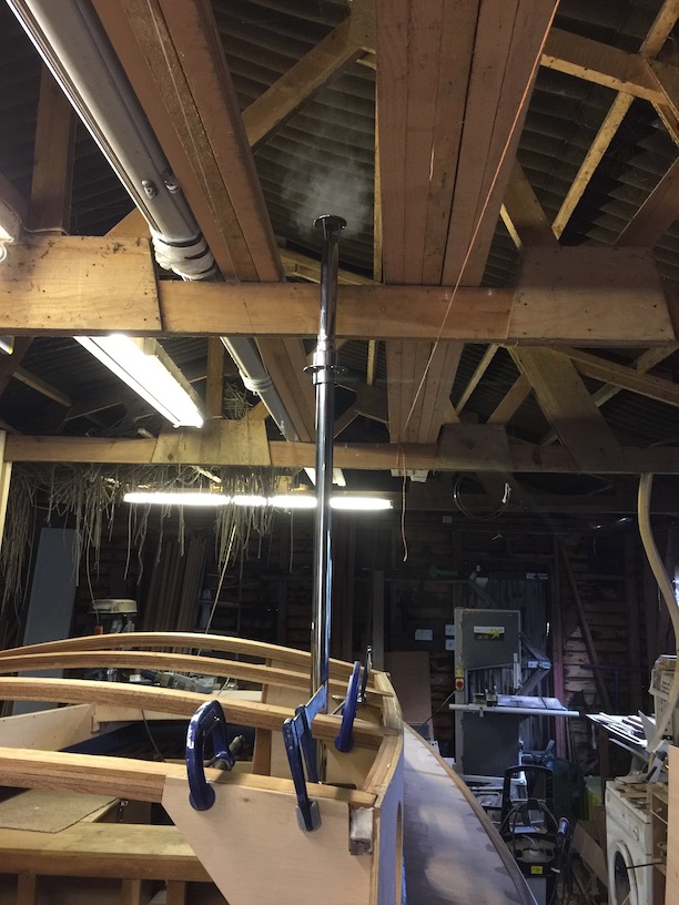 Moving the heater mounting legs to the other side of the frame did the trick and the flue now clears the beam. Of course, then I had to fire it up to see how hot the cabin side and frame became.